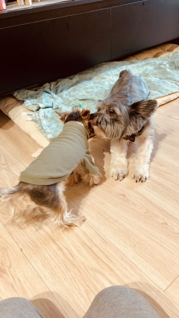 Chłopaki zajęli się sami sobą, dobrze, bo nie mam za bardzo siły żeby z nimi biegać z piłką, czy inną zabawką. A ostatnio dostają za dużo gryzaków, bo Leo przytył i stał się ” Kluskiem”, muszę go odchudzić.