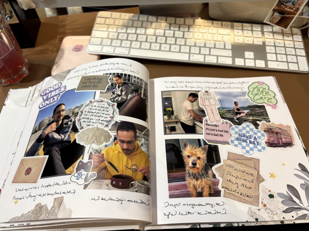 I właśnie to piszę. Za chwilę wrócę do fotoksiążki – zostało mi jeszcze jedno puste dzieło, które czeka na swoje wspomnienia i dopiski. Muszę przyznać, że zakochałam się w tym zajęciu. Fotoksiążki mają w sobie coś magicznego – można je spersonalizować, ozdobić, dopisać coś od siebie po druku… i wtedy naprawdę stają się twoje.