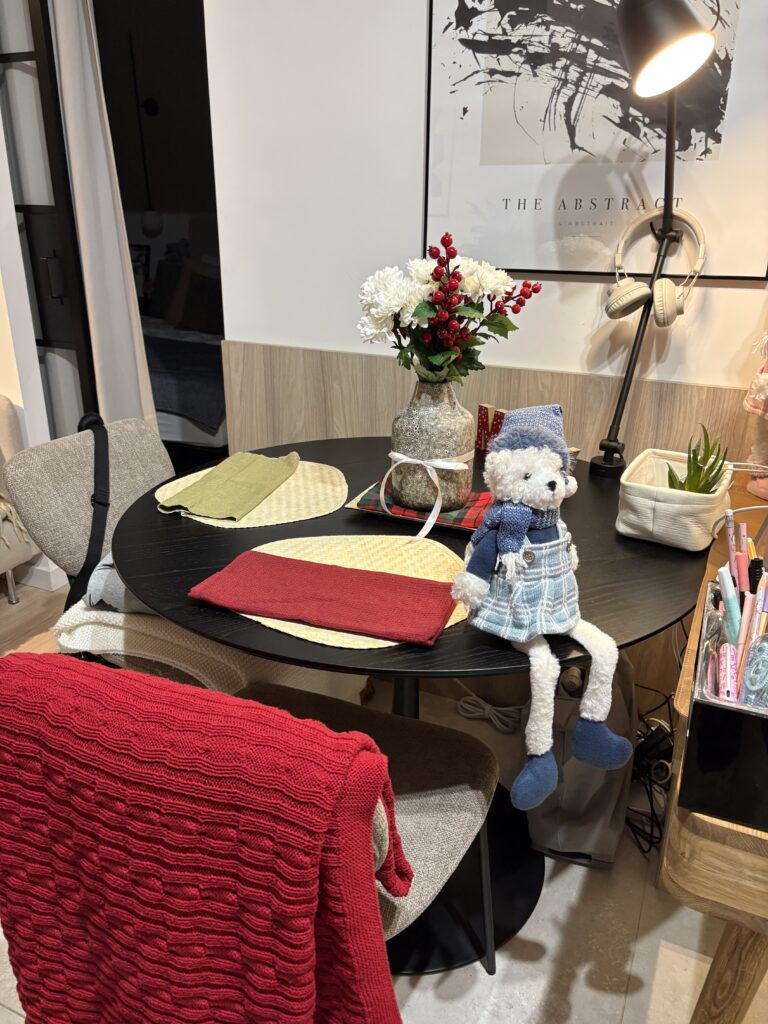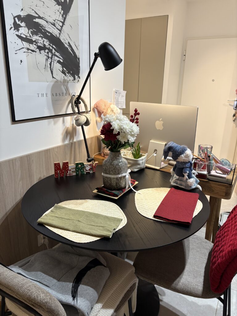 W Homli jeszcze raz zerknęłam na dodatki – serio, mogłabym tam zamieszkać – a w Auchan tradycyjne zakupy spożywcze. Szukałam też lampek świątecznych, ale oczywiście: było wszystko oprócz nich. Świece, bombki, łańcuchy, renifery… ale lampek brak. Jak co roku.
